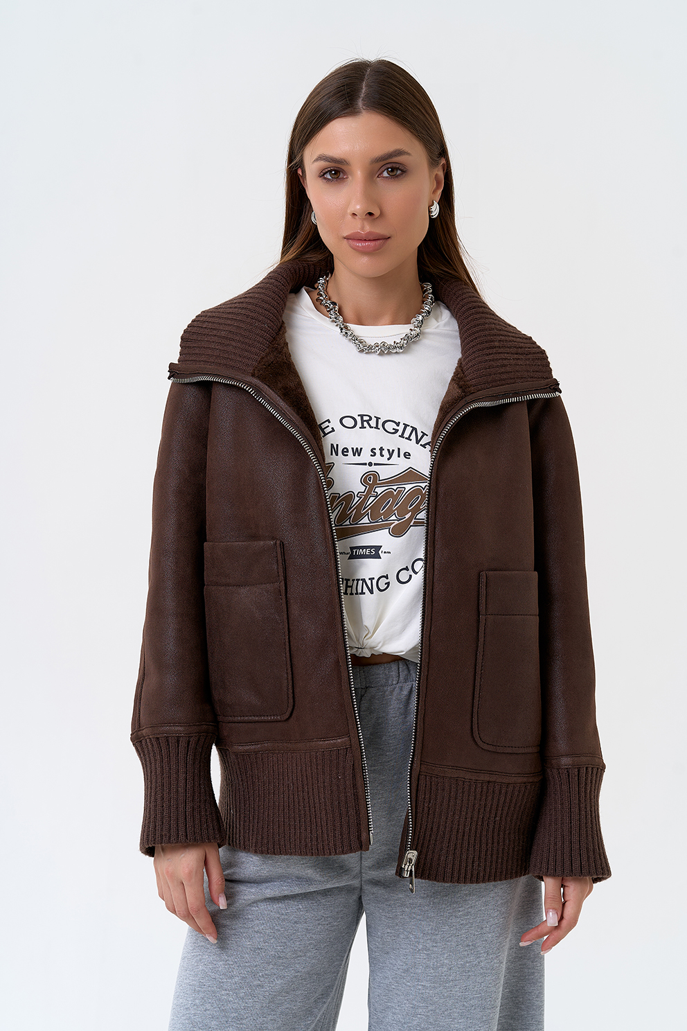 Для жителей Мурома у нас действует беспроцентная рассрочка и кредит на выбранный товар — Женский двухсторонний бомбер из эко замши в коричневом цвете артикул murom31436. Если у вас остались вопросы напишите или позвоните нам, и мы на них ответим.