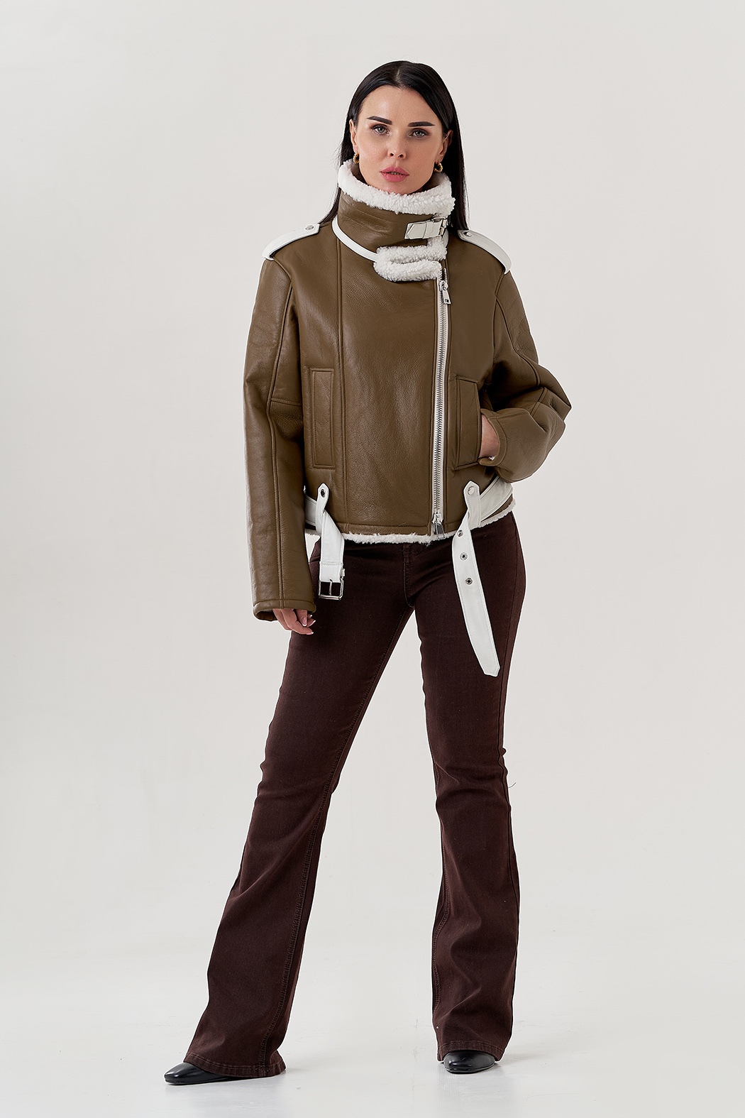 Крой воротника - отложной , отделка овчина белый